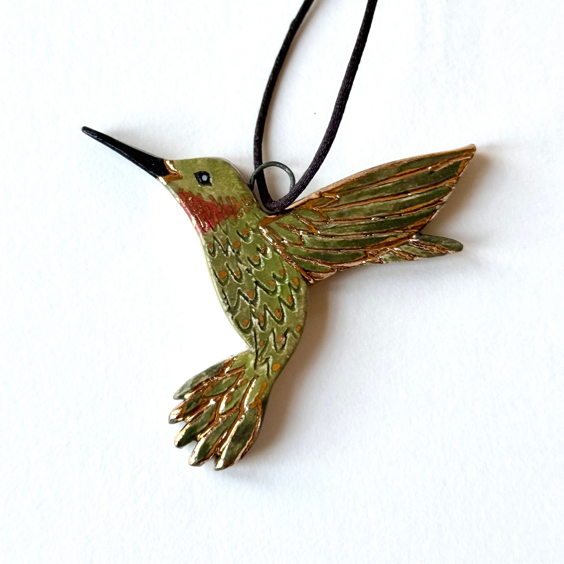 Green Hummingbird Ornament with Gold #2152
